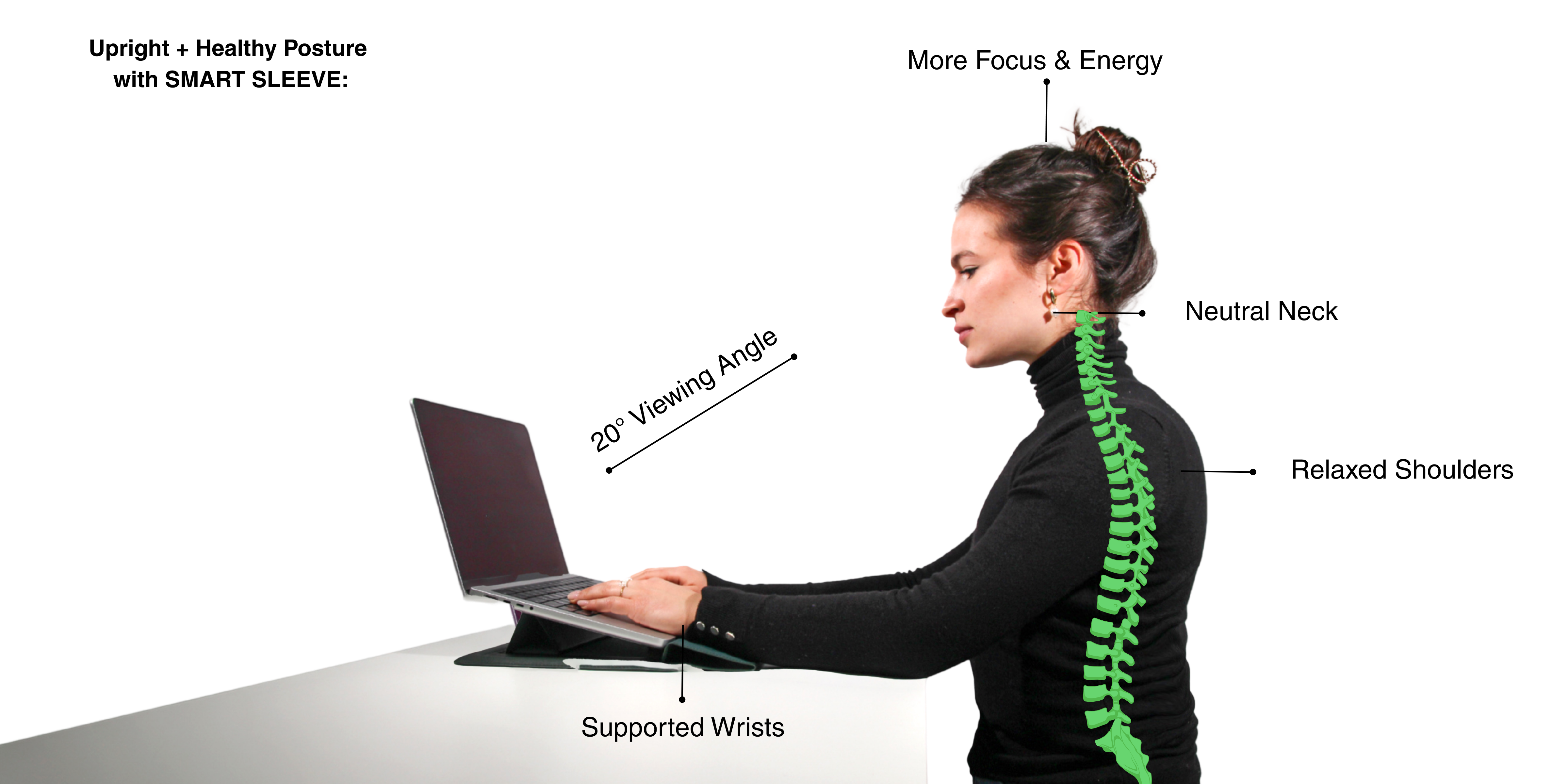 The SMART SLEEVE lifts your laptop to the optimal ergonomic angle - anywhere, anytime.